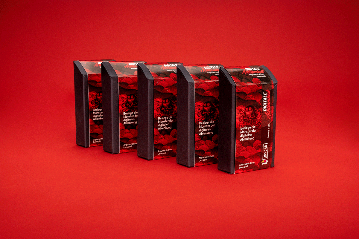 Das Spiel besteht aus 16 Monster- und 16 Wissenskarten. Die Monsterkarten beschreiben digitale Bedrohungen und Gefahren. Und mit den Wissenskarten bekommt ihr genau diese Bedrohungen in den Griff. Durch die Spielkarten wird man zur Selbstreflektion angeregt und man kann eine eigene Argumentationskette kreieren.