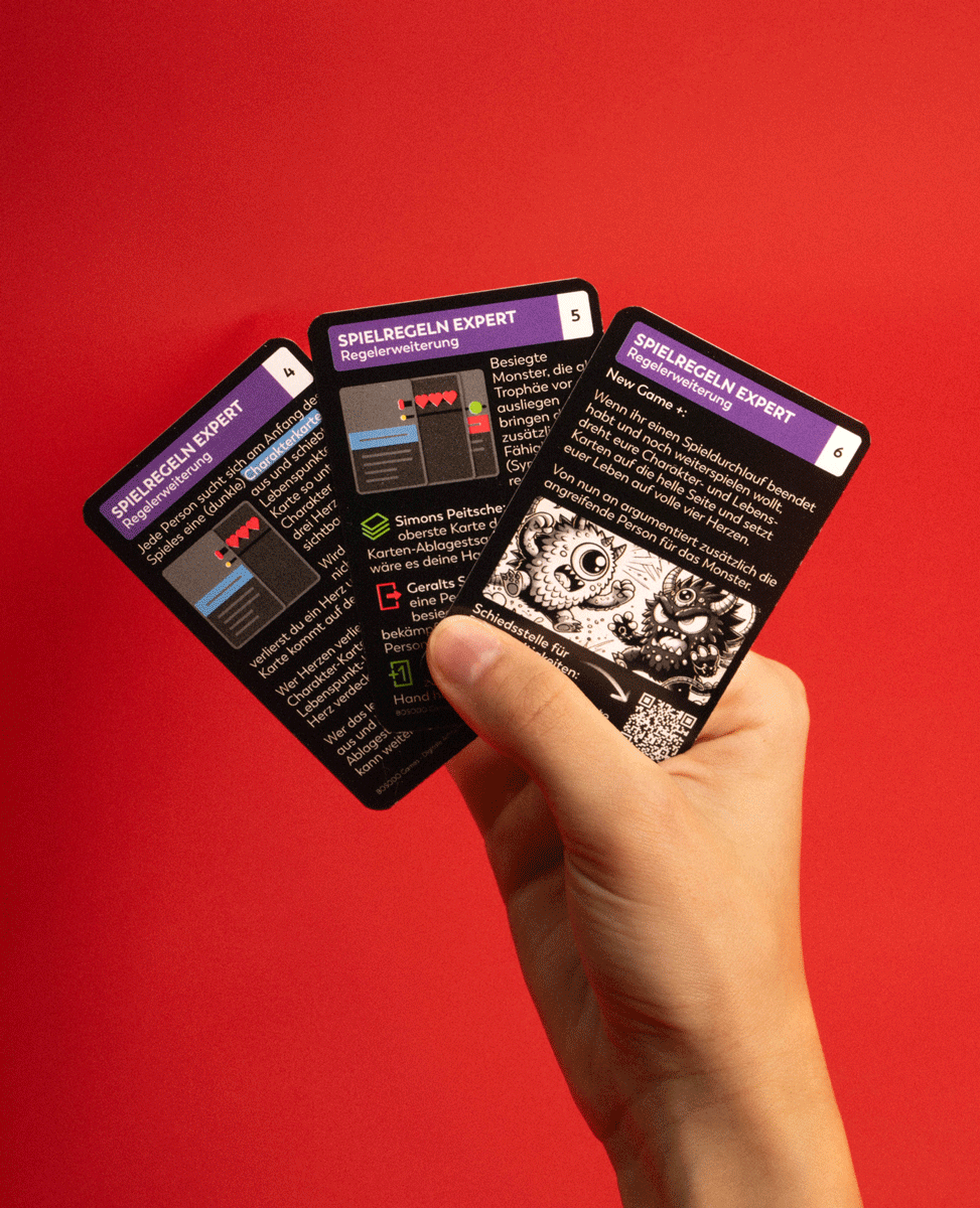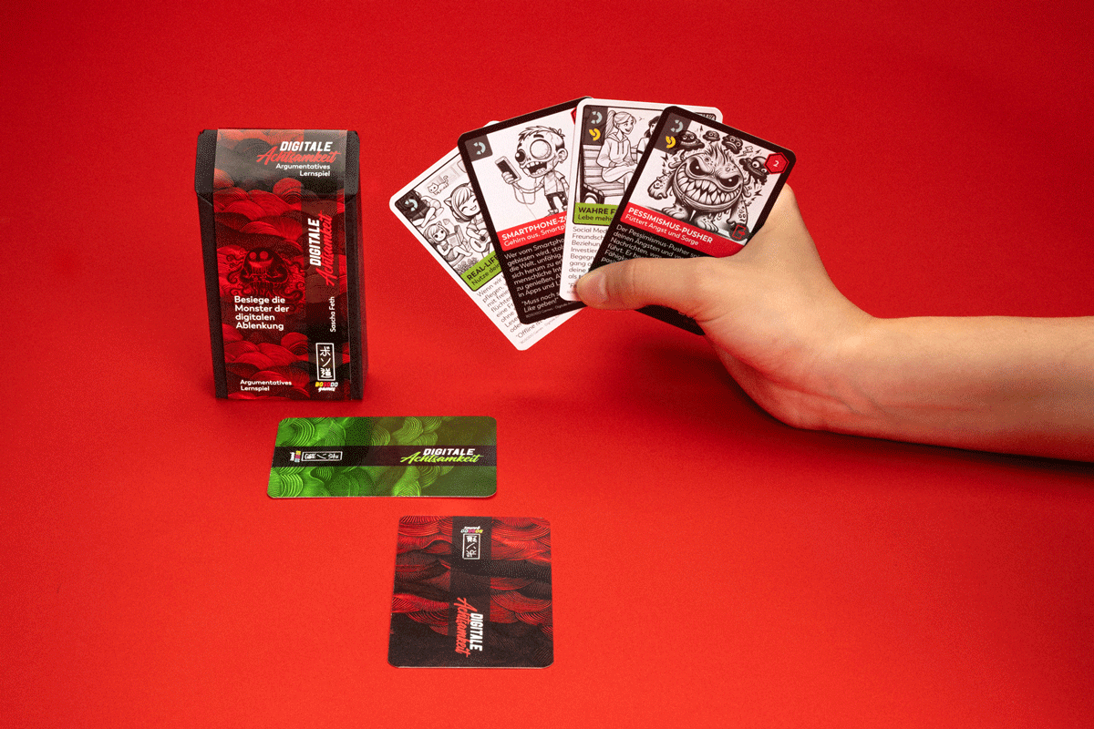 Das Spiel besteht aus 16 Monster- und 16 Wissenskarten. Die Monsterkarten beschreiben digitale Bedrohungen und Gefahren. Und mit den Wissenskarten bekommt ihr genau diese Bedrohungen in den Griff. Durch die Spielkarten wird man zur Selbstreflektion angeregt und man kann eine eigene Argumentationskette kreieren.