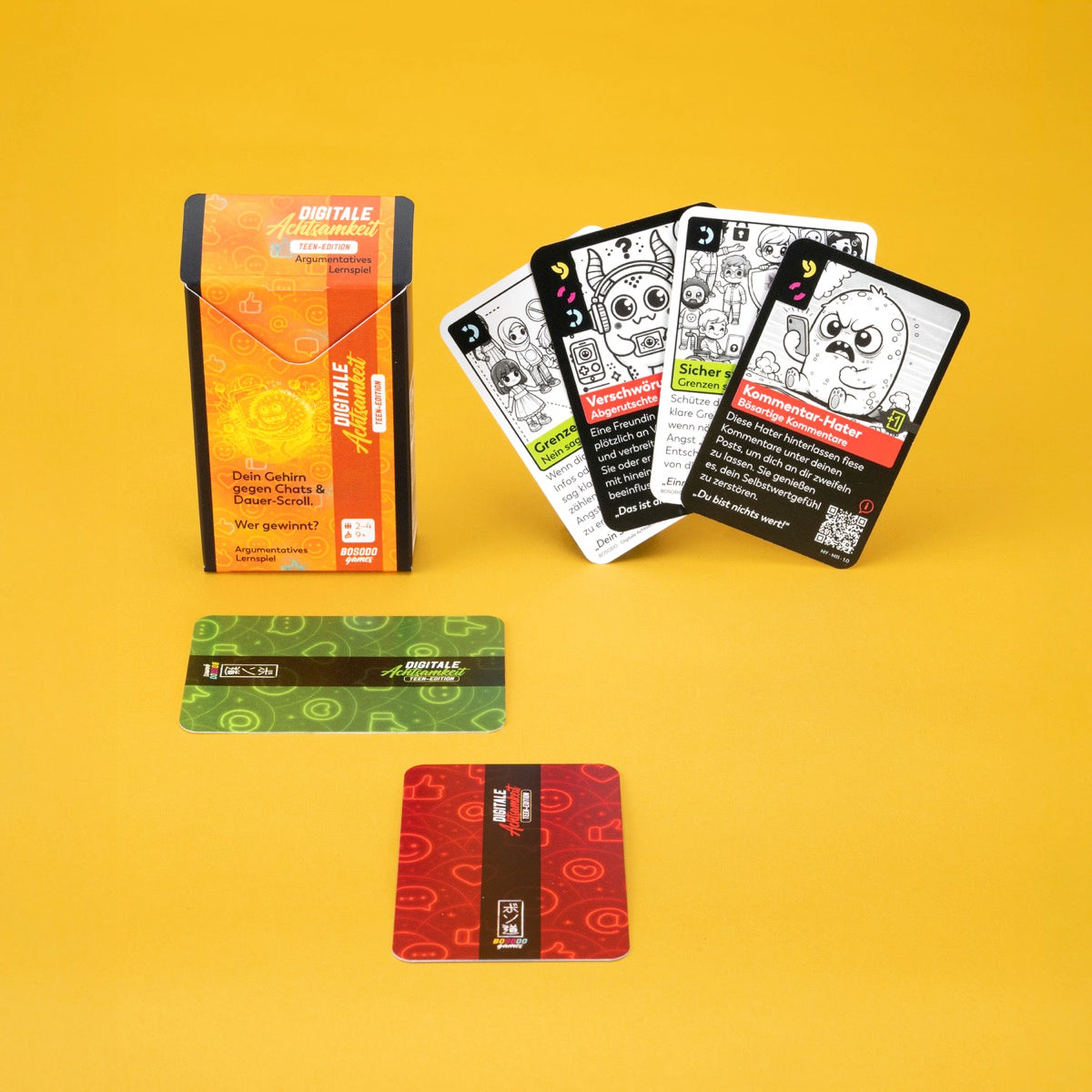 Mit unserem Kartenspiel „Digitale Achtsamkeit Teen Edition“ finden jugendliche spielerisch den Weg zu einem bewussteren Umgang mit Social Media und digitalen Medien. Am besten funktioniert das gemeinsam mit den Eltern oder in der Schule mit den Lehrern. Anstatt sich von digitalen Reizen überwältigen zu lassen, lernt man, gezielt Pausen einzulegen, sich auf das Wesentliche zu fokussieren und digitale Gewohnheiten aktiv zu reflektieren – und das gemeinsam mit anderen!