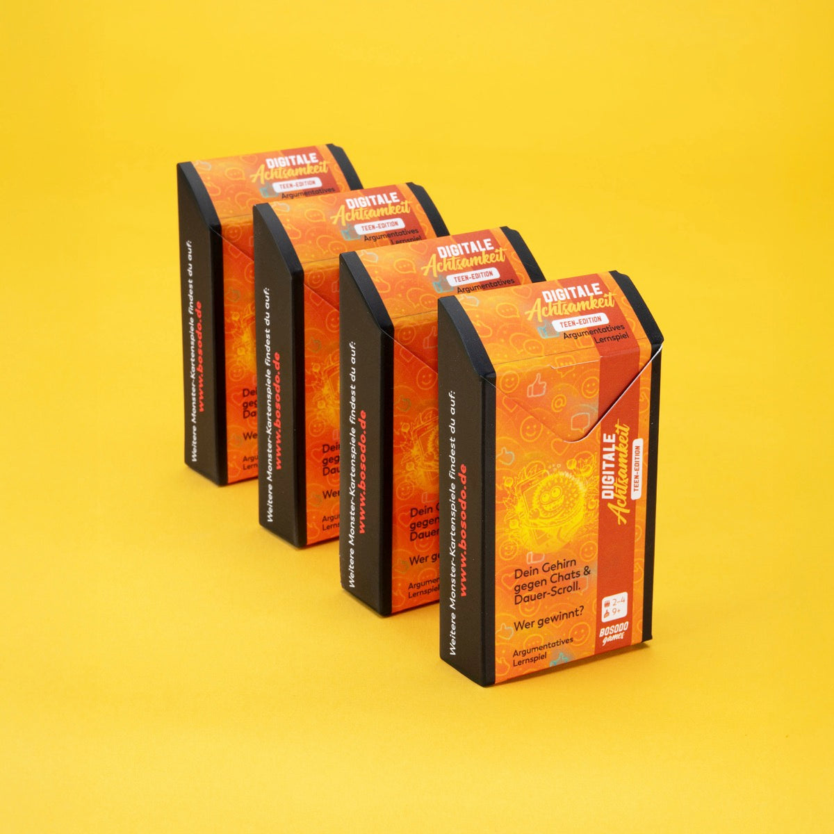 Mit unserem Kartenspiel „Digitale Achtsamkeit Teen Edition“ finden jugendliche spielerisch den Weg zu einem bewussteren Umgang mit Social Media und digitalen Medien. Am besten funktioniert das gemeinsam mit den Eltern oder in der Schule mit den Lehrern. Anstatt sich von digitalen Reizen überwältigen zu lassen, lernt man, gezielt Pausen einzulegen, sich auf das Wesentliche zu fokussieren und digitale Gewohnheiten aktiv zu reflektieren – und das gemeinsam mit anderen!